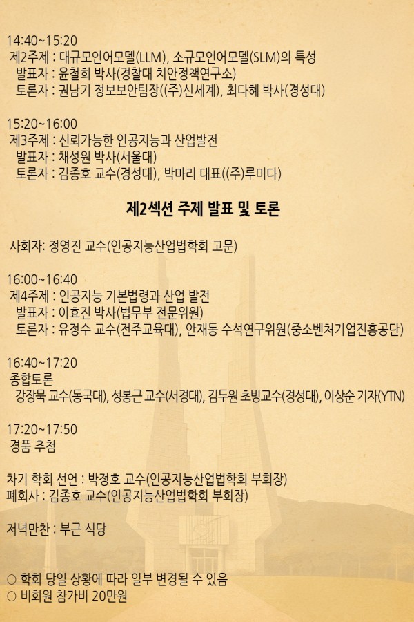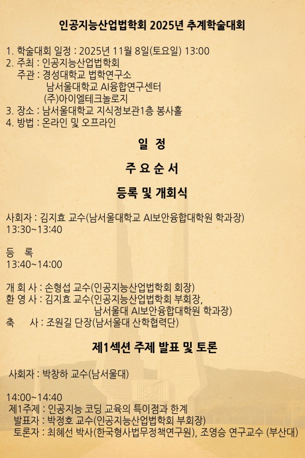 2025년 추계학술대회 프로그램 페이지 정보 작성자 최고관리자 댓글 0건 조회 75회 작성일 25-11-05 19:56 목록 본문 2025년 추계학술대회 프로그램 이전글2026년 신년정기학술대회 프로그램 26.02.26 다음글2025년 추계학술대회 포스터 25.11.05 댓글 0 댓글목록 등록된 댓글이 없습니다.